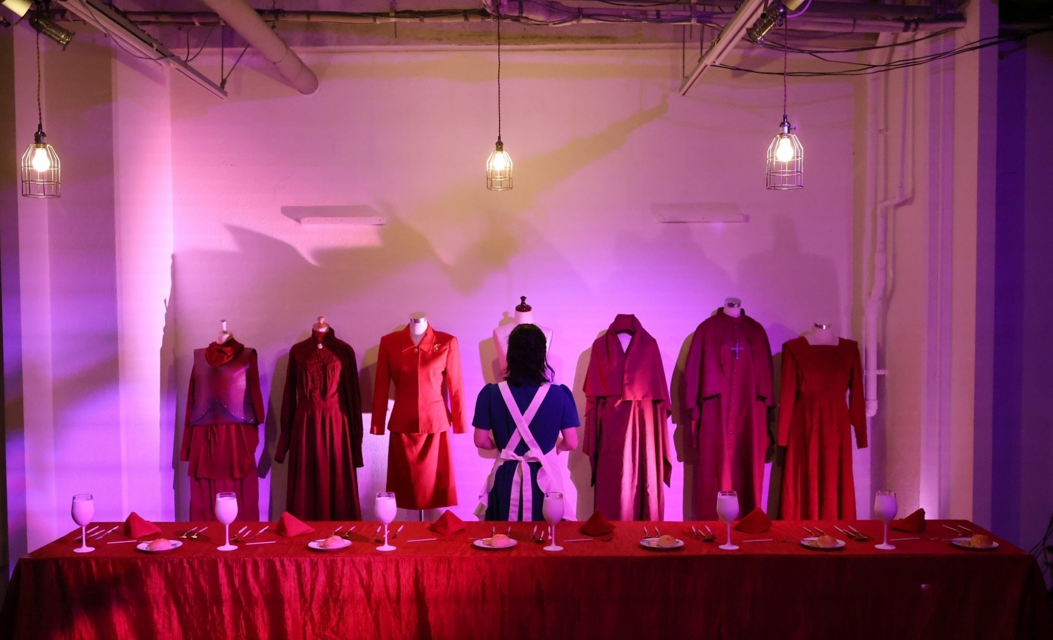 演出面では、冒頭でトルソーが数体並べられ、それぞれの時代の女性の役割を象徴する衣裳が飾られて、効果的に着用されていました。また、かわいらしいオフィスのテーブルや、登場人物の階級や役割を表現する衣裳のデザインも印象的でした。特に石村みかさんが演じたマーリーンは、成功を収めながらも葛藤を抱えるキャリアウーマンとして、観客の心をつかんで離しませんでした。また、「自分の人生には何もなかった」、「母さんは人生を無駄にした」といった台詞からは、見る側からするとそんなことは全くないのに、見る人の受け止め方次第で人生の価値が変わることを考えさせられる場面もありました。
