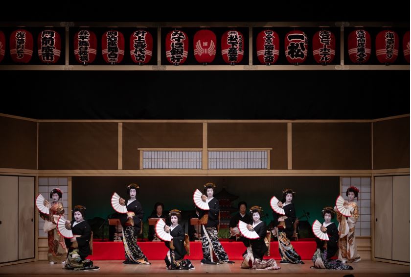 その後休憩を挟み、後半では「吹き寄せ」とフィナーレが披露されました。「吹き寄せ」とは短い曲を楽しく綴っていく、現代で言うところのメドレーのようなもので、今年は「民のうた 座敷の彩り」と題し、小唄や端唄のサワリや聴きどころを組み合わせました。次々と披露される華やかな唄と踊りに、お客様も拍手で応えていました。